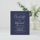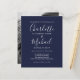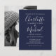 Com sua foto e nomes no estilo de assinatura. Este elegante convite de casamento azul marinho econômico pode ser personalizado com os detalhes do seu casamento em letras elegantes. Criado por Thisisnotme©