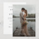 Celebre seu dia especial com nosso Convite de casamento de Foto Moderno Minimalista Boho. Apresentando uma foto de casal contra o fundo de um lago sereno, esse duplo convite combina design minimalista com toques personalizados. Ideal para destino e casamento tropical ao ar livre.