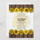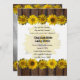 Este convite encantador é um estudo em contrastes com planks de madeira castanha e girassóis amarelos alegres no verão. Carregue sua própria foto do casal. Personalize e personalize conforme desejar. Perfeito para casamentos de verão.