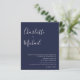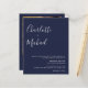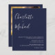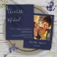 Apresentando nomes de estilo de assinatura, este elegante convite de casamento azul de marinho de orçamento pode ser personalizado com suas informações em caracteres quicos e sua foto especial no verso. Projetado por Thisnotme©