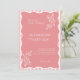 Celebre seu dia especial com este convite de casamento moderno, com uma fronteira ondulada desenhada à mão e bordas balançadas à mão. O design lúdico é aprimorado com elementos botânicos delicados e listras retrô-estilo, enquadradas em um layout de escala de cor rosa-na moda. Este convite combina elegância moderna com charme vintage — perfeito para casais que buscam algo único, mas eterno. Todo o texto é totalmente personalizável, permitindo que você altere fontes, cores e detalhes do casamento para se adequar ao seu estilo pessoal. Disponível em várias variações de cor para corresponder perfeitamente ao seu tema.