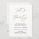 Este anúncio de casamento casual também serve como convite para a recepção de casamento. Convite de recepção frente e verso apresenta "Vamos Festejar" em letras de folha de ouro falso com texto anunciando o casamento dos recém-casados e convidando os convidados para uma recepção de casamento casual. Personalize com sua foto no verso.