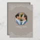 Convites elegantes de casamento com cinzas leves e borda geométrica sobre fundo esticado e mergulhadores brancos. Adicione sua foto favorita. Personalize o texto e a fonte para se adequar ao seu dia especial.