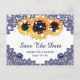 Esses elegantes cartões-postais de convite de casamento de girassol azul marinho rústico com girassóis, luzes de corda e renda floral são ideais para o seu casamento rústico country, jardim, quintal ou celeiro inspirado nas flores de girassol. Itens correspondentes disponíveis para complementar esses cartões-postais de convite de casamento rústico chic azul marinho.