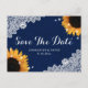 Convite de casamento de girassol de renda azul mar