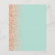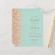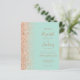 A borda esquerda deste elegante convite de casamento moderno apresenta uma borda falsa de pêssego. O texto personalizável combina manuscritos escuros de pêssego, fontes em copperplate e itálico em um fundo verde da casa da moeda. O verso apresenta um design de brilho de menta verde e cor de pêssego.