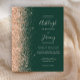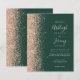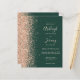 A borda esquerda deste elegante convite de casamento moderno apresenta uma borda falsa de pêssego. O texto personalizável combina manuscrito de pêssego pálido, fontes em copperplate e itálico em um fundo verde esmeralda. O verso apresenta um brilho de pêssego e um design verde esmeralda correspondentes.