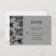 Um padrão de damasco de aranha sobre um fundo de linho cinza ilustrado decora este convite de casamento de Halloween, dando-lhe uma aparência texturizada. É mostrado no papel básico; no entanto, eu recomendo o peso e a textura do papel de linho, para melhorar a aparência.