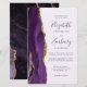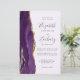 A borda esquerda deste elegante convite de casamento moderno apresenta uma cor d'água roxa, borda agitada, aparada com falso brilho dourado. O texto personalizável combina a escrita manual de cinzas de carvão, as fontes em copperplate e itálico em um fundo de lavanda. O verso apresenta um design de agate roxo e dourado correspondente.