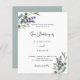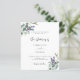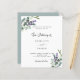 Um fundo branco na moda na frente. Decorado com eucalipto e lavandas florais. Personalize e adicione seus nomes e detalhes. Fundo: fundo colorido de cinza verde.