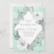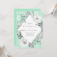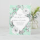 Um convite elegante e casamento vintage com um delicado arranjo de flores e videiras de cinza num padrão geométrico de diamante impressionante. A fronteira tem um padrão de renda branca delicado sobre um fundo impressionante de Neo Mint. A parte traseira da placa é projetada com um padrão de diamante para coordenar com a parte frontal.