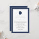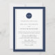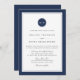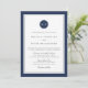 Personalize estes simples e elegantes convites de casamento monograma para combinar com as suas cores! Basta adicionar os detalhes do evento usando os campos modelo fornecidos e, em seguida, clicar em "personalizá-lo" para alterar as cores. Mostrado em azul e branco marinho clássico e nítido. Um elegante crachá de borda dupla e monograma circular no topo mostra suas cores lindamente, enquanto o bloco e a escrita em cinzas escuras mostram seus detalhes de casamento no estilo do eterno.