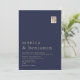 Abraçar a elegância do eterno com este convite de casamento azul e monograma minimalista do marinho. Com um design elegante com texto refinado de ouro e monograma personalizado, esse convite é perfeito para casais que buscam um olhar sofisticado e moderno. Personalize facilmente com seus detalhes.