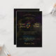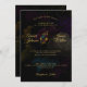 Convite De Casamento De Monograma Floral Escuro. Parte da Coleção de Convites para Casamento Amber. Florais Moody e monogramas. Texto colorido Dourado é totalmente personalizável. Flores Iluminadas. Fundo preto escuro com flores desbotadas.