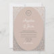 Este elegante convite de casamento cor-de-rosa e prata apresenta um monograma sofisticado no topo e uma delicada borda floral prateada. A mistura de tons reluzentes e prateados cria um olhar refinado e romântico, perfeito para casamentos clássicos e formais. O design eterno faz dele uma excelente escolha para casais que procuram um convite de casamento elegante, mas versátil.