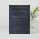 Meia-Noite Marinho Azul Velvet Olhe A Caligrafia Roteiro Cartões De Convites De Casamento. Moody, romântico e moderno. A textura azul parece veludo. Dourada cor - Script de caligrafia. A linha superior é uma imagem de caligrafia personalizada e não editável, mas pode ser excluída e substituída pelo texto. Parte do Concurso de Casamento Julia. NOTA: se azul não for a cor do tema do casamento, você poderá excluir a imagem de fundo azul e alterá-la para qualquer cor de fundo.