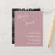 Convite para casamento de orçamento moderno com um design simples com seus nomes em um roteiro manuscrito elegante no canto superior esquerdo e seus detalhes de evento no alinhamento direito no canto inferior direito. O fundo tem sua foto favorita. Todos os elementos de design estão em cor-de-rosa rosa empoeirado e podem ser alterados na ferramenta de edição design. A letra chic da mão acrescenta um toque romântico a esta design minimalista.