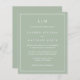 Simples convite de casamento orçamentário com um design moderno, mas elegante, com seu monograma de duas letras no topo e seus detalhes cercados por uma fronteira fina. Todo o texto está em branco sobre um fundo verde sábio. As fontes e as cores de fundo podem ser alteradas para qualquer cor desejada clicando no botão "personalizar". Estes convites baratos de casamento são excelente de um casal minimalista.