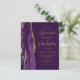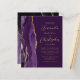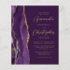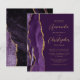 A borda esquerda deste convite de casamento moderno e elegante apresenta uma borda de ágata em aquarela roxa aparada com brilho dourado falso. O texto personalizável combina fontes douradas em script e sem serifa em um fundo de ameixa. O verso apresenta um design de ágata roxa e dourada correspondente.