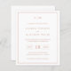 Simples convite de casamento orçamentário com um design moderno, mas elegante, com seu monograma de duas letras no topo, um layout ousado de data e seus detalhes cercados por uma borda fina. Todos os elementos de design estão em cor-de-rosa rosa dourado falso sobre um fundo branco e podem ser alterados na ferramenta de edição design. Um design chic e na moda que é excelente para um casal minimalista.