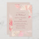 Este convite de casamento tropical é para amantes cor-de-rosa. A pincelada rosa e rosa poeirenta das folhas de palma secas, a grama-pampas e as orquídeas brancas tornam o cartão romântico. O par de fontes boho dá um toque elegante e sofisticado ao design. É ideal para casamentos de verão ao ar livre. Localizar itens correspondentes na Coleção de Casamentos Orquídeos Tropicais.