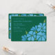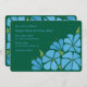 Flores grandes, arrojadas e estilizadas, azuis-céu suportam detalhes de casamento em um verde-caçador rico — ou uma cor complementar da paleta de cores de seu casamento. Monograma.