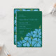 Flores grandes, arrojadas e estilizadas, azuis-céu suportam detalhes de casamento em um verde-caçador rico — ou uma cor complementar da paleta de cores de seu casamento. Monograma.