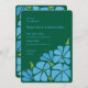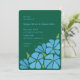 Flores grandes, arrojadas e estilizadas, azuis-céu suportam detalhes de casamento em um verde-caçador rico — ou uma cor complementar da paleta de cores de seu casamento.