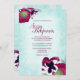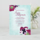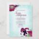 Este convite para casamento de flores no outono com pânico magenta é perfeitamente coordenado com envelopes, etiquetas de endereço de retorno e favoritos para festas. Escolha entre tamanhos e estilos nesta coleção. Estes anúncios de turquesa pálida e magenta são perfeitos para sua queda ou casamento no inverno. Personalize facilmente esta design para sua formatura, Quinceanera, ou convite do Bat Mitzvah! Este design traz uma bela flare a uma celeste, turquesa pálida, rosa quente, burgundy, cor-de-tema ameixa.