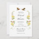 Convite de casamento moderno simples e elegante com beija-flores e flores retrô
