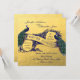 Convite de Casamento de Pavão de Foil Ouro, por Elke Clarke © para BlissfulWedding em Zazzle. Estes belos convites para o casamento são perfeitos para um casamento romântico ou um casamento pacífico. Este design único com Dois Bons Peacocks no Vintage Banner e texto em uma fonte azul escura, tudo em um fundo de folha de ouro Imprimido efeito fotográfico, cria um convite de casamento único e na moda.