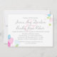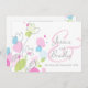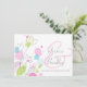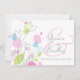 Lindos contornos de flores azuis e verdes, cor-de-rosa, cinzas simples e bonitas, e pétalas gráficas, pequeno convite para casamento. Edite este convite com suas próprias palavras. Design exclusivo por Sarah Trett para www.mylittleedenweddings.com