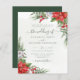 Bonito convite para o casamento de baratos, com ilustrações botânicas pintadas à mão de flores de poinsettia, verde de inverno, galhos de pínus e de pinheiros e bagas sagradas. Escolha perfeita para casamentos de Natal.