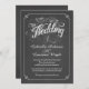 Convites para Casamento do Conselho Rustic Chalk — Suavemente, encaracolado, ricos e bela tipografia retrógrada ao estilo Vitoriano fazem um convite de casamento preto-e-branco que os vossos convidados adorarão e apreciarão como um lembrete importante do vosso dia especial. Apenas adicione os nomes da noiva e do noivo e as informações do casamento neste modelo fácil de usar. Inspirado pela arte de poster do chalkboard do século antigo, este estilo de nouveau apresenta um 'swash' de ornamentado, espirros e uma arte de cartas desenhada à mão. O texto de convite personalizado é uma bela mistura de caligrafia de aparência de letterpress clássica com um traço decorativo de script de pub que é adequado para um tema formal ou semiformal. O estilo moderno casual, mas clássico, é perfeito para casamentos modernos modernos modernos, com um toque de charme rústico sofisticado mas romântico para casais tradicionais. Entre em contato conosco para obter ajuda com a personalização se precisar de espaço adicional para os detalhes do casamento. Outros tamanhos e estilos disponíveis, além de carimbos de correio, coordenação de papelaria, acessórios de pacotes de casamento e favores de chá. © março de 2014 Wedding Trendy. Elementos desta design foram licenciados para uso comercial — todos os direitos são protegidos por leis de direitos autorais dos EUA e da Internacional e não podem ser reproduzidos ou publicados sem permissão ou consentimento prévio dos artistas originais e/ou seus agentes de licenciamento.