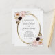 Orçamento Tudo em Uma Rosas Cor-de-Rosa Dourada Convite para Casamento de Quadros... Nosso convite para o casamento floral "All in One" no orçamento apresenta buquês de lindas rosas rosa-pinceladas curvas em volta de uma estrutura oval de folha metálica de ouro em um fundo branco antigo. A parte traseira do cartão contém todos os detalhes que você normalmente veria em cartas separadas dentro do pacote de casamento. Este convite de casamento, no estilo moderno, foi concebido para ser elegante e consciente do orçamento... para não falar em poupar tempo. Na parte de trás, há também um modelo de gráfico de código QR que você pode substituir por seu próprio código (ou excluir se você não planeja usar um). Todo texto de exemplo pode ser facilmente revisado com suas próprias informações sobre o modelo de personalização. NOTE: O cartão "Orçamento" não é exatamente o mesmo que os convites tradicionais de cartão simples. Nossos cartões de orçamento são de 4,5 x 5,6 polegadas feitos de papel semirbrilhante de 110 lb comparado com os tradicionais cartões planos de convite de casamento de 5 x 7 polegadas em papel mate de 120 lb. Os cartões de orçamento não vêm automaticamente com envelopes, assim como os cartões de convite tradicionais, mas você pode comprá-los na mesma página na saída, se desejar. Tudo isso em um design de orçamento também está disponível em um tradicional cartão de convite de casamento 5x7.