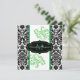 Este casamento tema damasco preto e branco monograma dramático tem acentos de rolhas verdes e um monograma verde em um rótulo preto central. Este convite seria perfeito para um primavera, verão, outono ou casamento no inverno, e também funcionaria bem para outros eventos formais que exigem classe e gosto. É mostrado aqui no papel básico. O papel linen também seria bom, mas se você quiser um papel mais pesado, eu sugiro o papel metálico de gelo, que daria a ele um adorável luster opalescente. ****Observe que os papéis coloridos (prata metálica e ouro, feltro e manchado) alterarão todas as cores no design. ALÉM DISSO, se você redimensionar o convite ou se você alterar fontes ou o tamanho da fonte, parte do design e/ou texto pode ser cortada. Tudo será impressão como você vê no seu monitor. Não verei seu convite, e Zazzle NÃO corrigirá nada (digitação, alinhamento etc.). O texto e o papel são todos personalizáveis. Se precisar de ajuda para este convite, envie-me um e-mail ANTES de fazer seu pedido. Se você precisar de outros itens correspondentes, envie um email para niteowlstudio@gmail.com.