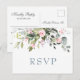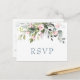 Crie seu próprio cartão de resposta com este modelo de "Cartão-Postal de Convite de Casamento com Aquarela de Verde de Eucalipto" para combinar com o estilo, as cores e o tema do seu casamento.