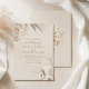 Este convite de casamento em marfim elegante apresenta rosas brancas delicadas e flores secas suaves dispostas em um fundo bege quente. A tipografia refinada e tons neutros de champanhe criam uma estética atemporal perfeita para casamentos rústicos modernos, de arte fina e minimalistas.