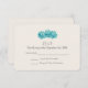 Um convite de casamento com 3 rosas azul turquesa pintadas com aquarelas.