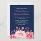 Convite de Casamento de Rosas Listras Azul Marinho