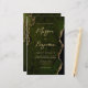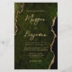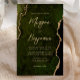 Este elegante convite para o casamento apresenta uma imagem de fundo da aquarela verde-oliva, agada, aparada com falso brilho dourado. O texto personalizável combina manuscrito, protetor e fontes itálicas de cor dourada. O verso apresenta um design de cor verde-oliva e de agata-ouro coordenadores.