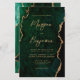 Este elegante convite de casamento apresenta uma imagem de fundo da emerald green watercolor agate, aparada com falso brilho dourado. O texto personalizável combina manuscrito, protetor e fontes itálicas de cor dourada. O verso apresenta um design de esmeralda verde e ouro.
