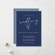 Convite de Casamento de Script Azul Marinho mínimo. Estique seus convidados de casamento com este convite de casamento azul-escuro, modesto, apresentando um belo roteiro branco em um incrível fundo azul-marinho. Este Convite tem uma design azul real espantosa, com vibrações modernas e mínimas, perfeita para o seu casamento simples, moderno e minimalista. O layout mínimo e na moda chama a atenção para o roteiro branco, contrastando com o fundo azul escuro impressionante. Este convite vai dar o tom de um belo cenário de casamento rodeado por florais azuis, brancos ou neutros, e marinho ou decoração de casamento azul marinho. Uma adição perfeita a qualquer celebração de casamento azul-da-meia-noite muda ou bonita. O Coletivo de Domingo © por Rachel Hannah Gee
