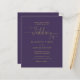 Este elegante convite de casamento orçamentário pode ser personalizado com seus detalhes de celebração em tipografia de ouro moderna em um fundo roxo. Projetado por Thisnotme©