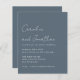 Escritor de Digitalização de Lata Azul e Típica de Tipografia de Script Minimalista de Orçamento Escuro com detalhes do site de RSVP.