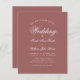 Um simples convite para casamento de orçamento minimalista. Tem apenas texto branco sobre fundo de canela rosa. A palavra Casamento e os nomes são escritos em um roteiro caligráfico elegante. "rosa de canela" é uma moderna cor vermelha-rosada-rosada-rosada, muito parecida com burgundy.