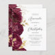 A borda esquerda deste elegante convite de casamento apresenta uma borda floral burguenta, aparada com folhas falsas de ouro e folhas reluzentes. O texto personalizável combina o script inspirado em vintage de cinzas de carvão e fontes sans serif em um fundo branco. O verso apresenta um design floral correspondente.