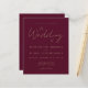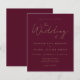 Este simples e moderno convite para o casamento, mostra um texto dourado sobre fundo vermelho burgundy, com as palavras "o Casamento de" na caligrafia de na moda. Adicione os nomes da noiva, noiva e detalhes do casamento em fontes de sans serif douradas. O lado inverso é sólido.