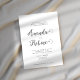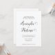 Celebre o seu casamento em estilo eterno com este elegante convite de casamento preto e branco, com uma caligrafia moderna fluente para os nomes do casal e texto serif refinado ao longo de todo o processo. Uma escolha perfeita para casamentos formais, eventos de jardim e comemorações românticas. Totalmente personalizável com seus detalhes de casamento. O layout limpo e a tipografia sofisticada fazem deste convite uma bela manutenção e um destaque no correio.