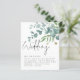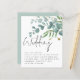 Teal Dourado Convite de casamento de Script Eucalyptus. Um alternativo de 4,5 pol x 5,6 pol com preço inferior. Disponível em um STOCK DE CARTÃO SEMI GLOSS 110 lb, que é a opção padrão (recomendada para convites, semelhante à espessura de um cartão postal) OU um STOCK DE PAPEL THINNER FINISH DE 80 lb FINISH (ideal para gabinetes). Os envelopes são um extra opcional e são ligeiramente maiores que o tamanho da placa. Um elegante estilo de conjunto informal para o cabeçalho, com todos os detalhes elegantemente pequenos sob e elegantes folhas de eucalipto em tons de lacre e ouro no topo. Personalize facilmente com suas informações.